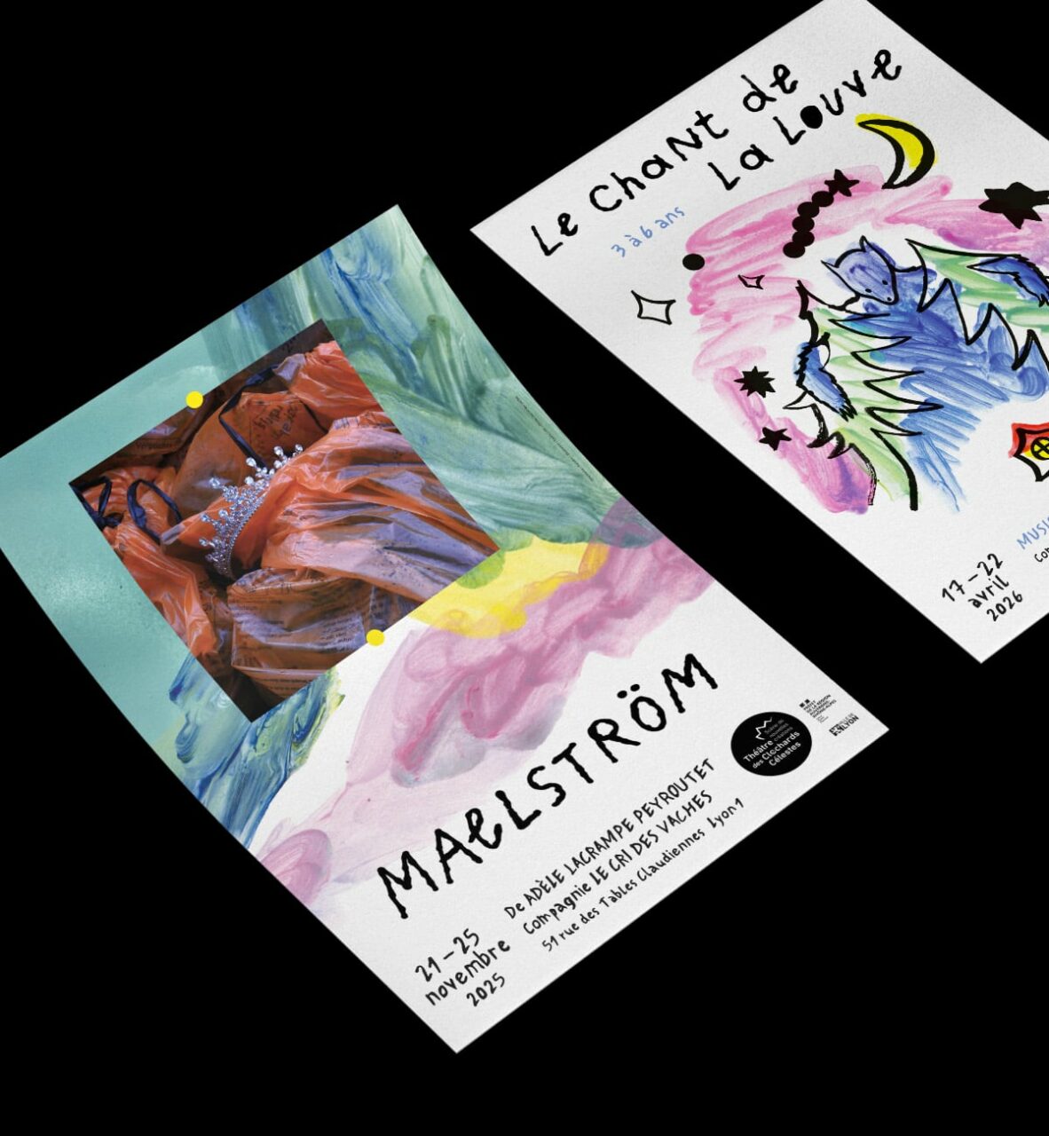 Cette année encore nous formons une équipe créative avec Gaelle Loth et on renouvelle l’identité et les supports : deux nouvelles séries d’affiches et deux dépliants pour mettre en avant la programmation tous publics et jeune publics.