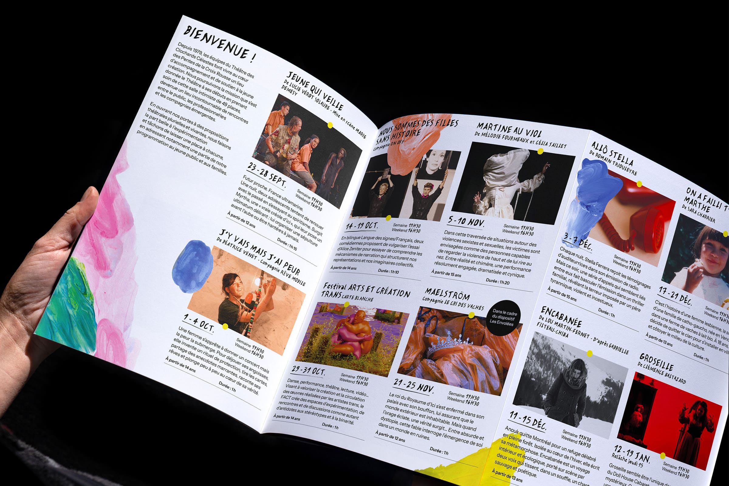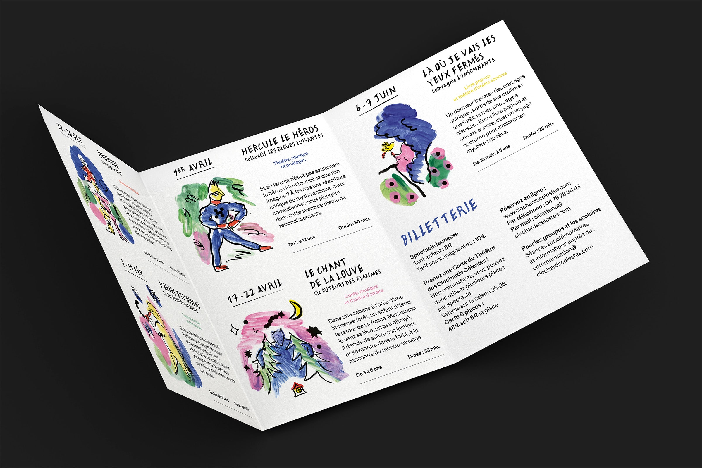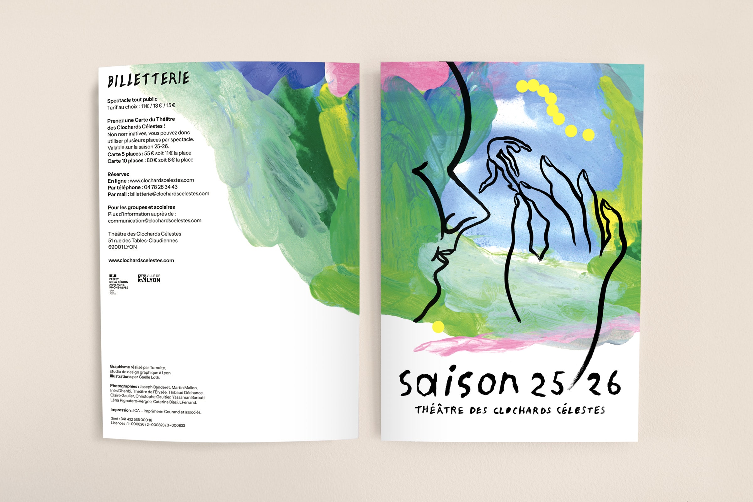 Pour la 9e (!) année consécutive, nous réalisons l’identité de saison, les affiches et les programmes du théâtre des Clochards Célestes.
