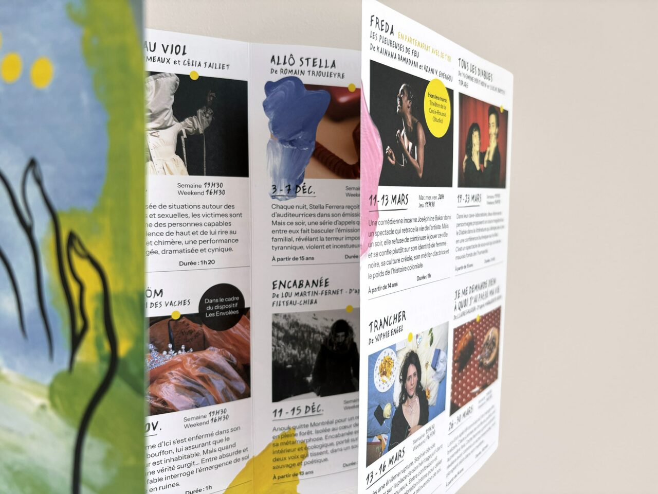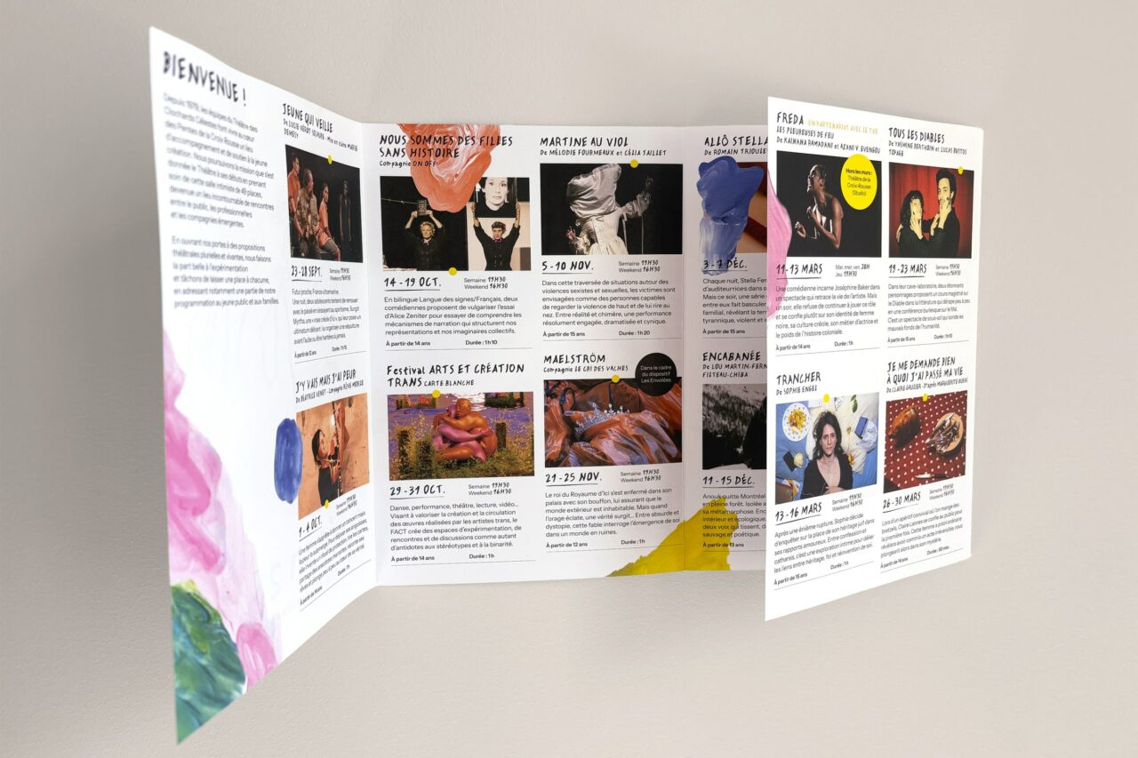 Cette année encore nous formons une équipe créative avec Gaelle Loth et on renouvelle l’identité et les supports : deux nouvelles séries d’affiches et deux dépliants pour mettre en avant la programmation tous publics et jeune publics.