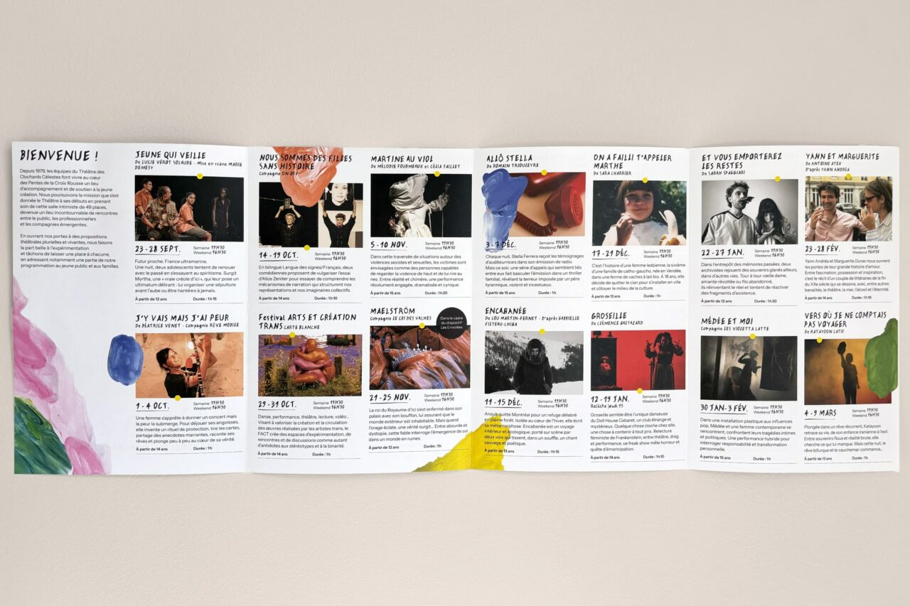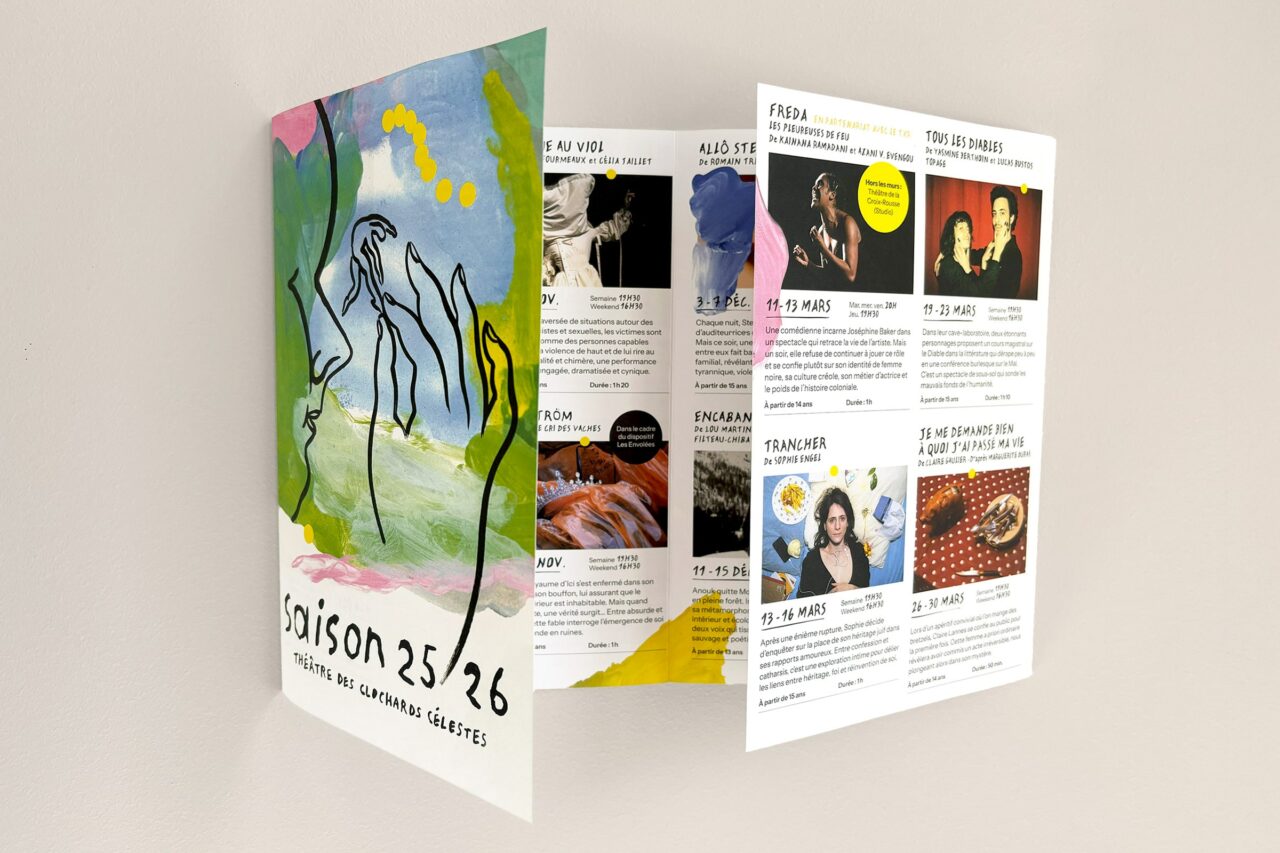 Pour la 9e (!) année consécutive, nous réalisons l’identité de saison, les affiches et les programmes du théâtre des Clochards Célestes.
