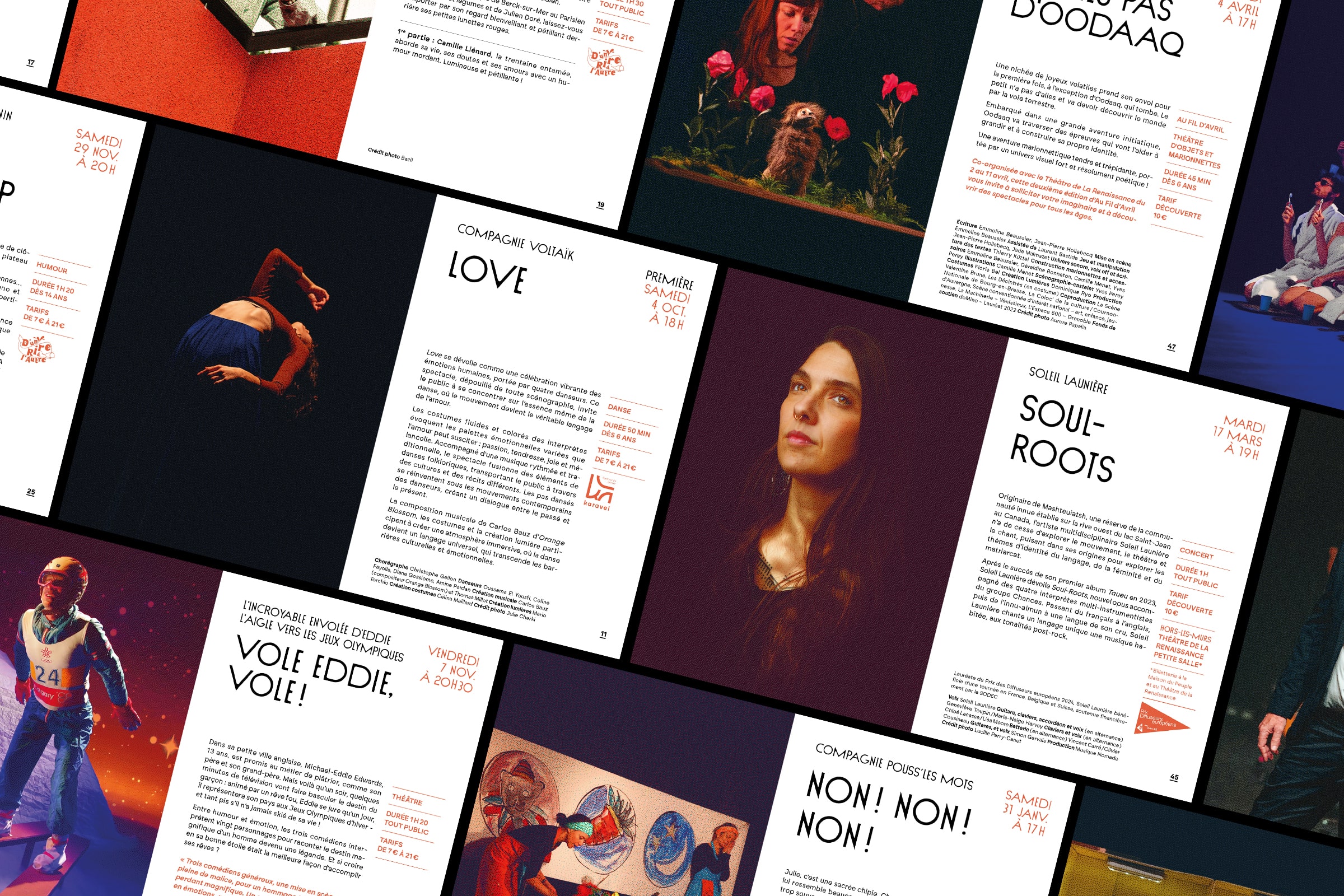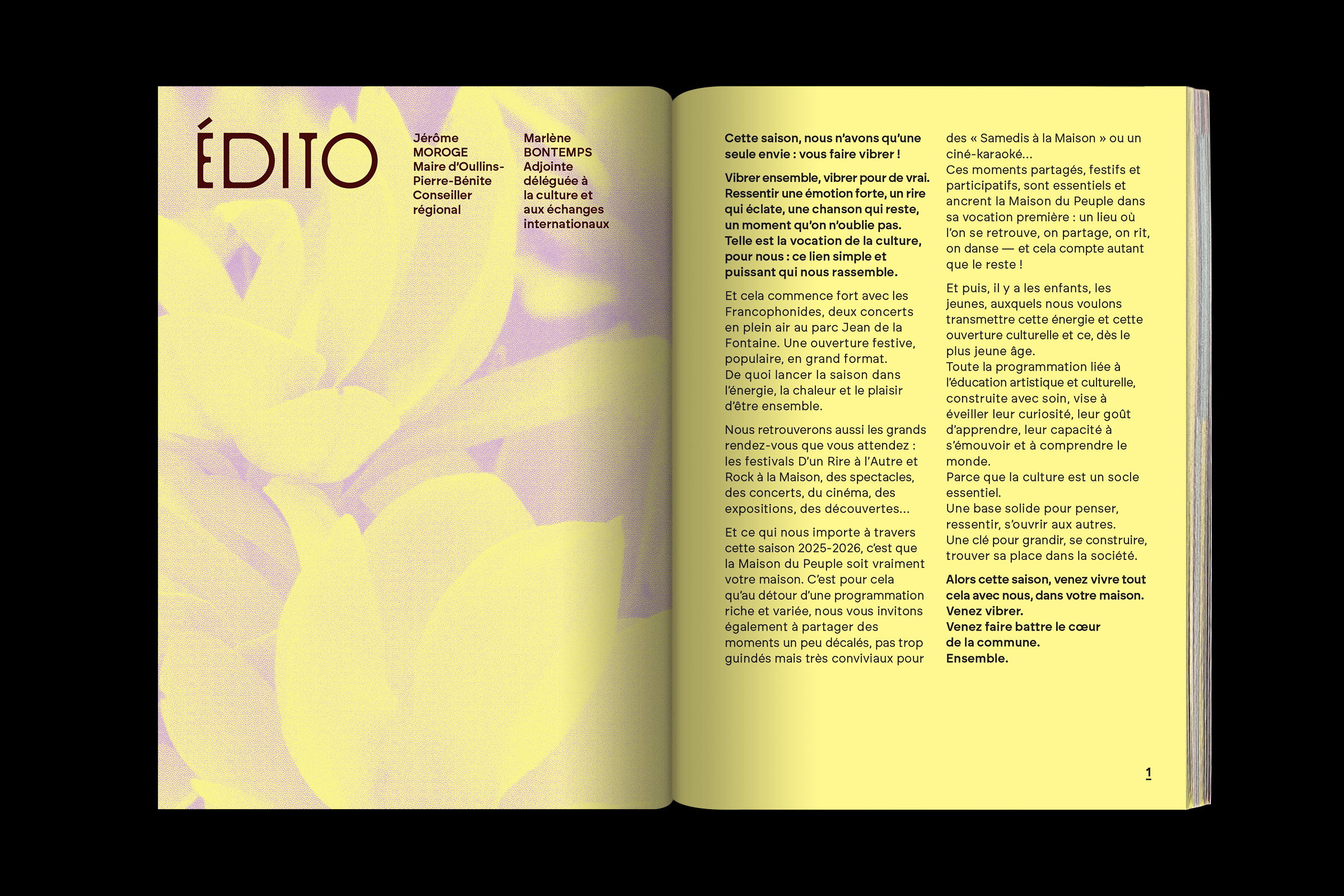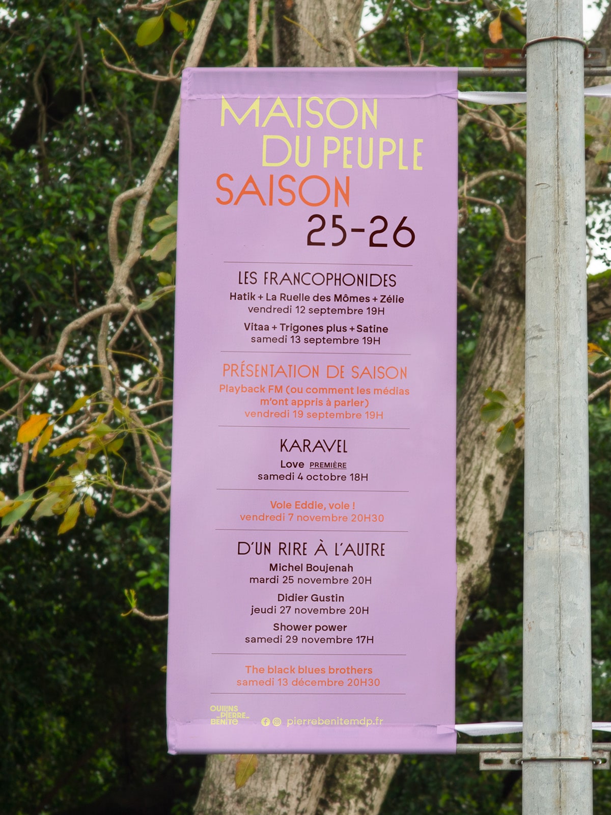Pour la deuxième année consécutive, nous réalisons l’identité de la Maison du Peuple — théâtre d’Oullins-Pierre-Bénite. Une identié avec une typographie rythmée et des couleurs vibrantes pour dévoiler la programmation culturelle du théâtre.